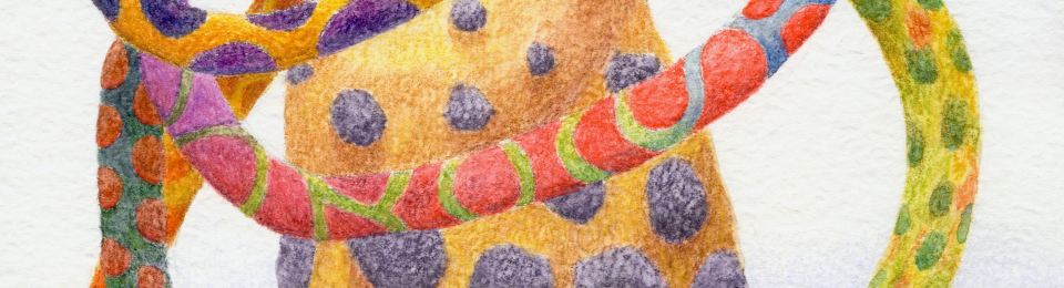 On 3.5.2025 I got up early and went to hang a few of my works in Tammisaari library’s tiny “staircase gallery”. There my mini exhibition Ex herbarium imaginarium (imaginary herbarium) is now in all its glory, and will remain there until May 30th. The five works present imaginary, plant-like creatures that I have made with watercolors, watercolor pencils and charcoal pencils.
