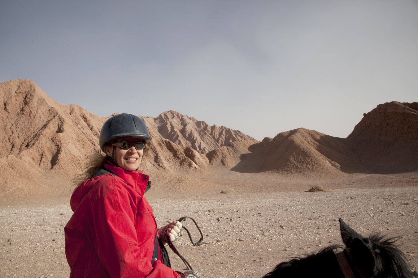 Our next memorable ride happened in Chile in July 2010. We rented a four wheel drive from Calama airport and drove to San Pedro de Atacama in Northern Chile. One day we decided to go on a guided horse tour in the moon-like Valle de los Muertes, organized by a company called Rancho Cactus.